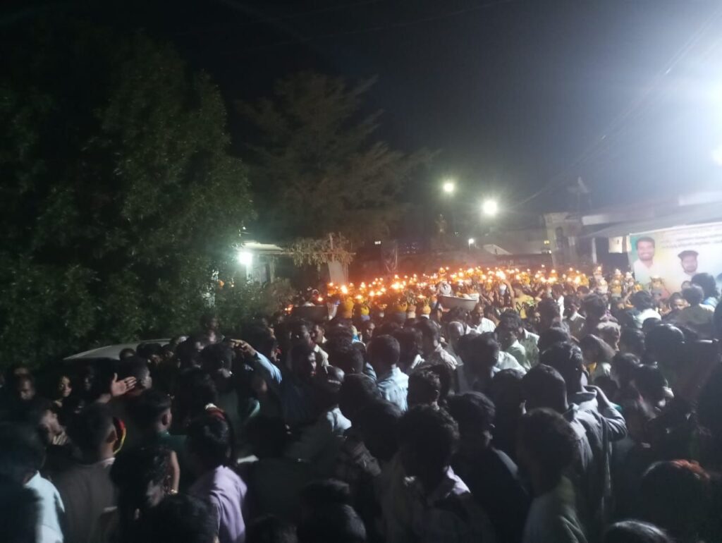 సిద్దిపేట రూరల్ : మండల పరిధిలోని పెద్ద లింగారెడ్డి పల్లిలో పెద్దమ్మ తల్లి ఆలయ వార్షికోత్సవాలు వైభవం గా కొనసాగుతున్నాయి. ముదిరాజ్ సంఘం ఆధ్వర్యంలో నిర్వహిస్తున్న ఉత్సవాల్లో భాగంగా రెండో రోజు సోమవారం బోనాలు సమర్పించారు. ఢిల్లెం బల్లెం చప్పుల్లు, శివసత్తుల శిగాలు, పోతురాజుల నృత్యాల నడుమ బోనాల ఊరేగింపు కొనసాగింది. జై పెద్దమ్మ తల్లి నామస్మరణ తో పల్లెలో ఆధ్యాత్మిక వాతావరణం నెలకొంది. ఊరేగింపులో సంఘం సభ్యులు, యువత పెద్ద ఎత్తున పాల్గొన్నారు.