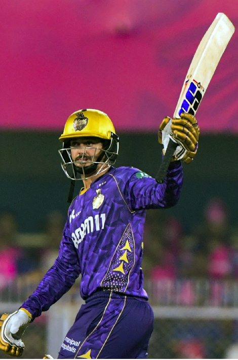 అనంతరం 152 పరుగుల లక్ష్యంతో బరిలోకి దిగిన కోల్కతా ఆరంభం నుంచే దూకుడు ప్రదర్శించింది. మోయిన్ అలీ (5) తక్కువ స్కోరుకే వెనుదిరిగినప్పటికీ డికాక్ చెలరేగిపోయాడు. రాజస్థాన్ బౌలర్లను చీల్చి చెండాడుతూ బౌండరీలు, సిక్సర్ల వర్షం కురిపించాడు. రహానే (18) సహకారంతో కేకేఆర్ను గెలుపు దిశగా తీసుకెళ్లాడు. ఆఖర్లో రహానే ఔటైనప్పటికీ అంగ్క్రిష్ రఘువంశీ (22 నాటౌట్)తో కలిసి డికాక్ జట్టుకు విజయాన్ని అందించాడు. ఈ క్రమంలో 97 పరుగులతో అజేయంగా నిలిచిన డికాక్ సెంచరీకి మూడు పరుగుల దూరంలో ఆగిపోయాడు. డికాక్ ‘ప్లేయర్ ఆఫ్ ది మ్యాచ్’ అవార్డు గెలుచుకున్నాడు.