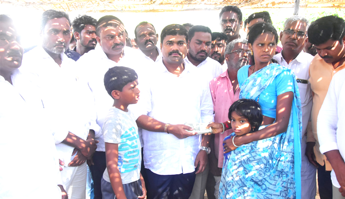బోయినిపల్లి, మార్చి 23 (ఇలాకా): చొప్పదండి నియోజకవర్గం,బోయినిపల్లి మండల కేంద్రానికి చెందిన సురకాని మల్లేశం ఇటీవల రోడ్డు ప్రమాదంలో మృతి చెందగా వారి కుటుంబాన్ని చొప్పదండి శాసనసభ్యులు డాక్టర్ మేడిపల్లి సత్యం ఆదివారం కాంగ్రెస్ పార్టీ నాయకులతో కలిసి పరామర్శించి,రూ.50 వేలు నగదు ఆర్థికసాయం చేసి,మానవత్వాన్ని చాటుకున్నారు.అనంతరం ఎమ్మెల్యే సత్యం మాట్లాడుతూ భవిష్యత్తులో మృతుని కుటుంబాన్ని అన్ని విధాలుగా ఆదుకుంటామని భరోసా కల్పించారు