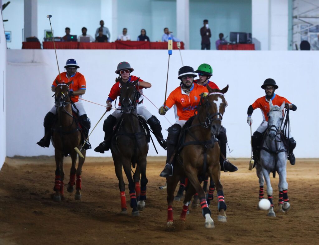 మొయినాబాద్, ఫిబ్రవరి 27: మొయినాబాద్‌లోని అజీజ్ నగర్‌లోని హైదరాబాద్ పోలో రైడింగ్ క్లబ్‌లో వరల్డ్ ఎరీనా పోలో చాంపియన్‌షిప్ పోటీలు ఆసక్తిగా జరుగుతున్నాయి. నాలుగో రోజు ఆటలో భాగంగా ఇండియా టీమ్ 12 యూకే టీమ్‌ను చిత్తు చేసింది. తొలి చక్కర్‌లో 8 రెండో చక్కర్‌లో 4 ఓడించింది. భారత్ తరఫున చైతన్యకుమార్ (4 గోల్స్), అర్సలన్ ఖాన్ (3 గోల్స్), సలీమ్ అజ్మీ (ఐదు గోల్స్) సాధించగా.. యూకే టీమ్ తరఫున లాదియా లెగ్గట్ (2 గోల్స్), లియో స్టువర్ట్ (ఒక గోల్), ఫెలిసిటీ కొబ్బొల్డ్ (ఒక గోల్) సాధించారు.